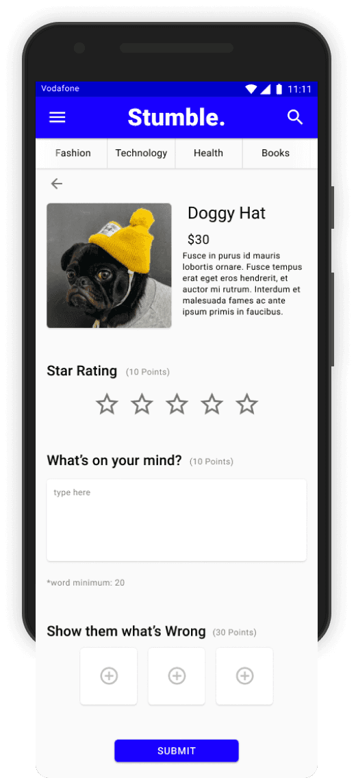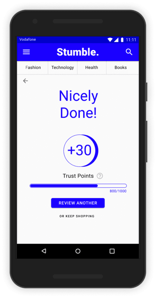 Stumble makes it easy for customers to look for products by creating a review community that customers can trust. Also Stumble creates less distractions by only recommending the products that customers are interested in.